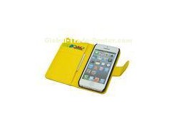 Yellow Leather Apple iPhone Protective Cases Shockproof Cell Phone Wallet Case